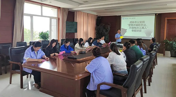 此次電信網(wǎng)絡反詐騙宣講,也是虎林市公安局“警民共建法治社會”的一項重要工作。之前在廣場、公園、影院等公共場所也開展過宣講活動,考慮到珍寶島藥業(yè)是虎林市知名企業(yè),歷年來為地方經(jīng)濟發(fā)展作出了貢獻,同時員工人數(shù)較多,故此專程為企業(yè)開展了宣講服務,送法上門,讓員工們了解詐騙手段,學會反詐措施,提高防范意識,有效地保障人身及財產(chǎn)安全。